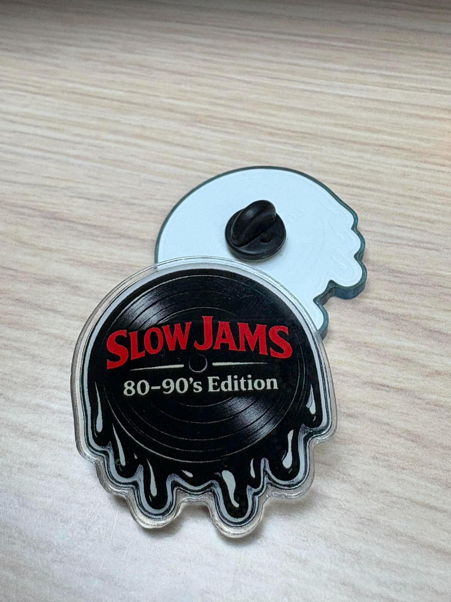 This “Slow Jam 80–90’s Edition” acrylic pin is a must-have for true music lovers who appreciate that smooth, nostalgic sound. Designed with a dripping vinyl record aesthetic, this piece blends old school soul with modern street style.